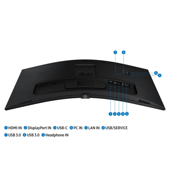 Порт USB-C дозволяє вмикати пристрій та передавати дані за допомогою всього одного кабелю, а порт LAN – підключатися до ноутбука без роз'єму LAN для використання Ethernet. Зручне розташування кабелів у поєднанні з регульованою висотою екрану, який нахиляється та повертається, забезпечує комфортну та привабливу роботу протягом усього дня.