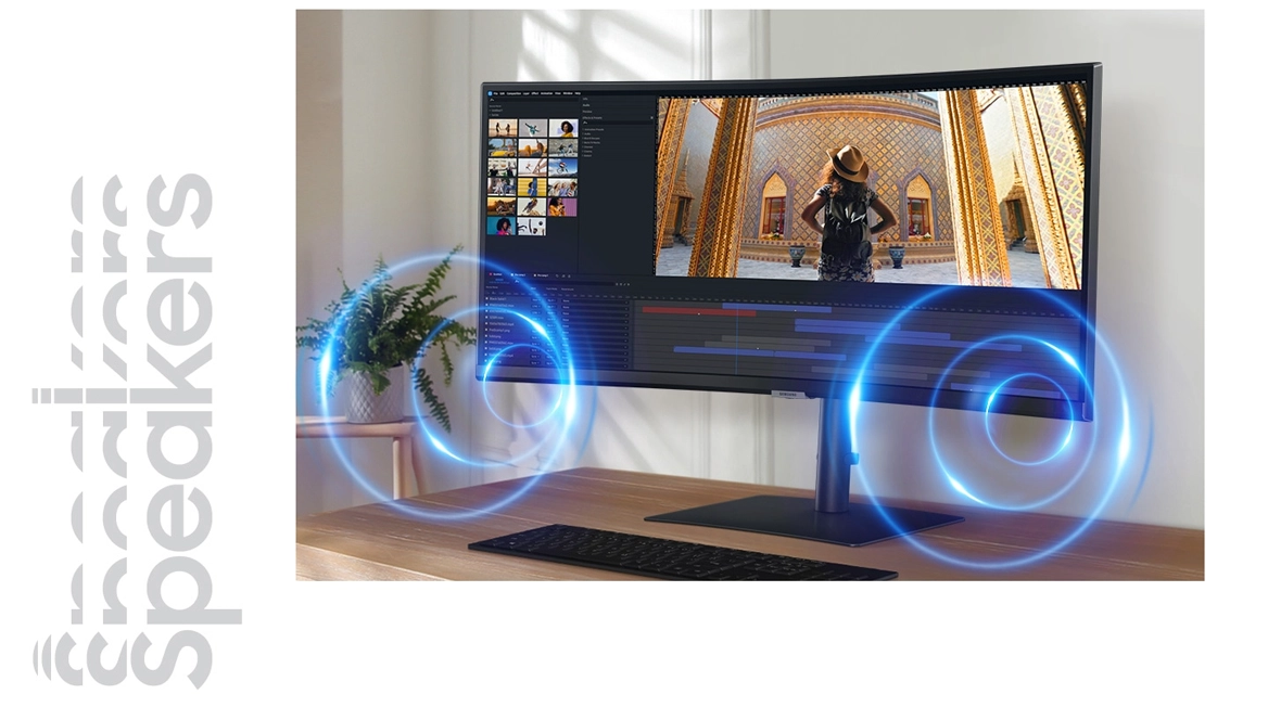 Працюйте, навчайтеся та розважайтеся без додаткових периферійних пристроїв. Завдяки вбудованим динамікам ви можете звільнити місце на робочому столі, мінімізувавши кількість підключень, необхідних для більш ефективної роботи, і при цьому легко прослуховувати будь-який контент.