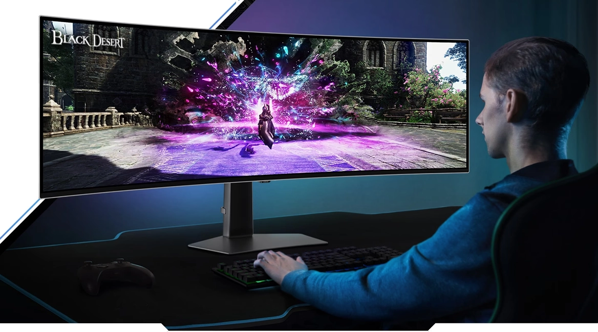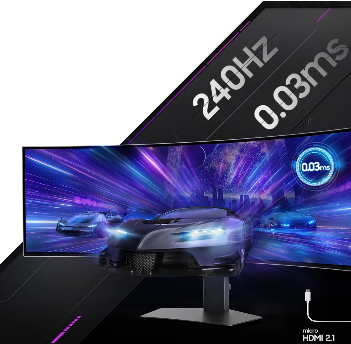 Неосяжні світи огортають вас завдяки надширокому дисплею. Екран шириною як два чотиривимірні монітори високої чіткості забезпечує максимум простору, щоб охопити всі найдрібніші деталі. Він охоплює ваше поле зору завдяки кривизні 1800R, щоб ви могли повністю відчути себе на місці вашого персонажа.