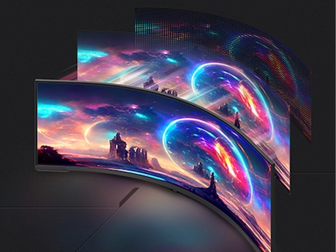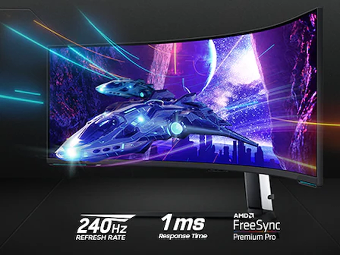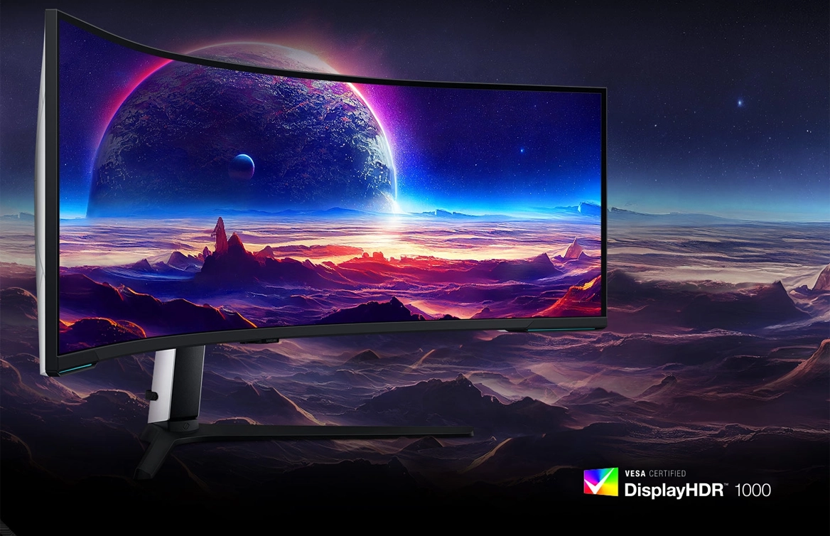 Живіть в іграх, які здаються реальнішими, ніж зовнішній світ. Перший у світі подвійний UHD-монітор огортає вас надшироким 57-дюймовим екраном із кривизною 1000R.