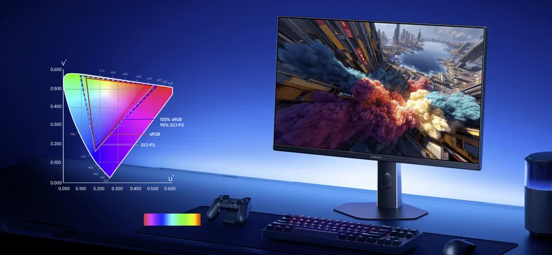 Професійна 8-бітна глибина кольору забезпечує насичені градації з плавними та природними переходами. Поєднання 100% охоплення sRGB і 95% DCI-P3 гарантує захоплюючий і бездоганний візуальний досвід.