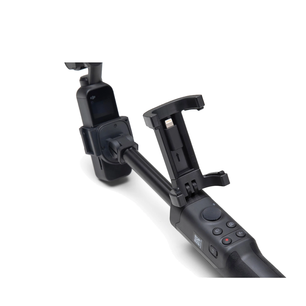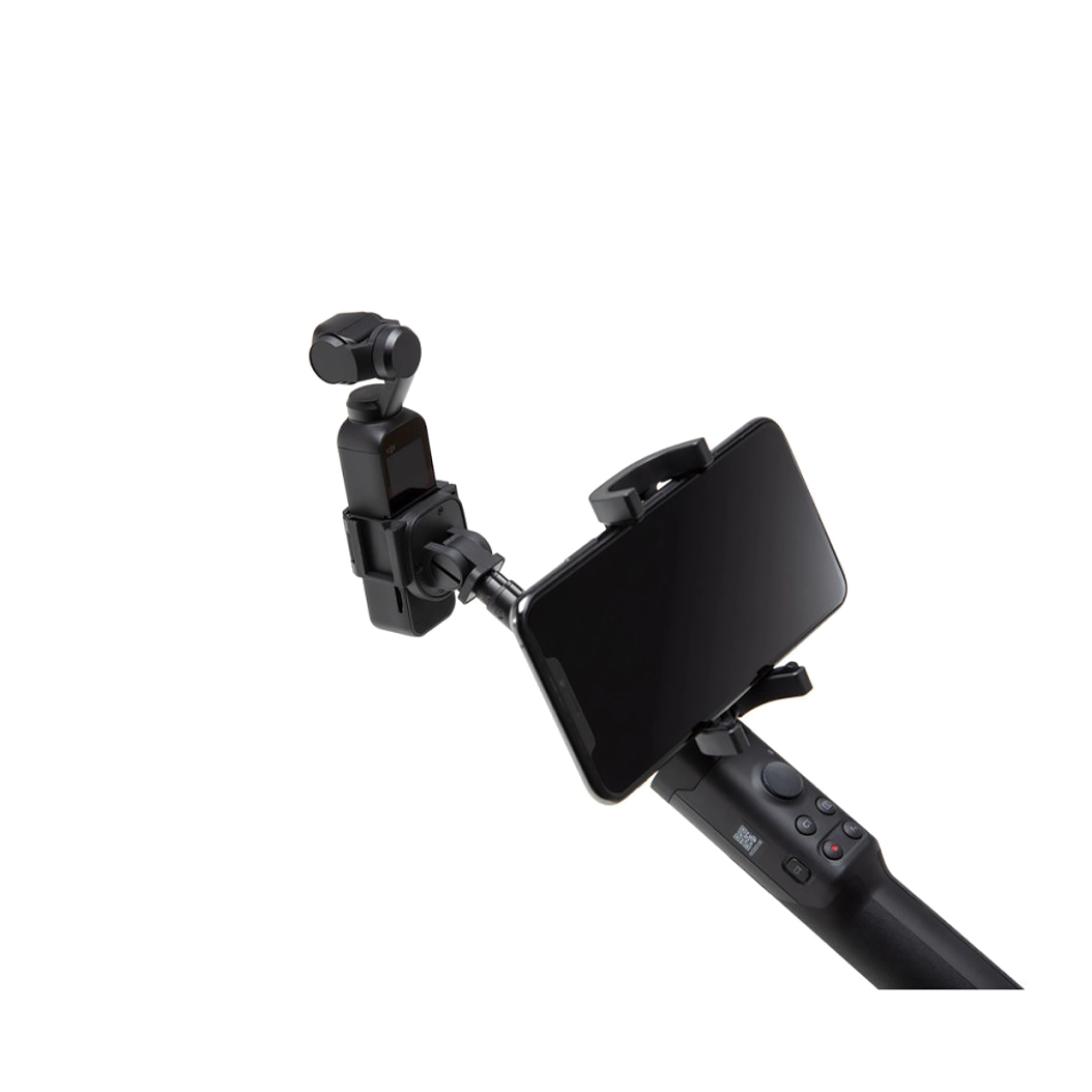 Ви можете прикріпити свій смартфон до тимача і використовувати бездротовий модуль Osmo Pocket або з'єднувальний кабель ( обидва продаються окремо ) для управління камерою з допомогою монопода. Подовжувач також має кілька монтажних кронштейнів для додаткових аксесуарів. Максимальна довжина висувного монопода для Osmo Pocket становить 500 мм, що дозволяє знімати під різними кутами.