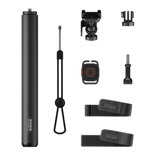 - Комплектація: розсувний монопод, водонепроникний пульт дистанційного керування, адаптер для затискних кілець, адаптер для шарнірного кріплення, ремінець для зап'ястя, кріпильний гвинт, ремінець для пульта дистанційного керування і подовжувач ремінця на зап'ястя для пульта дистанційного керування.