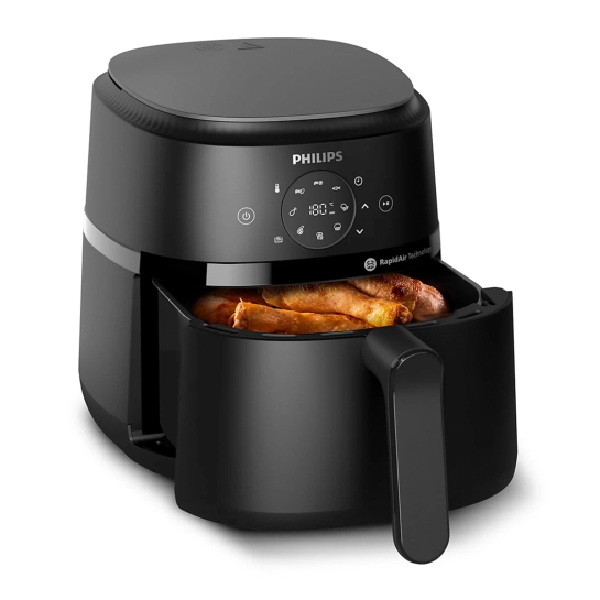 На зручному сенсорному екрані можна вибирати з 9 передустановок: заморожена картопля фрі, домашня картопля фрі, курячі ніжки, м'ясо, риба, сніданок, овочі, пиріг та підігрів.