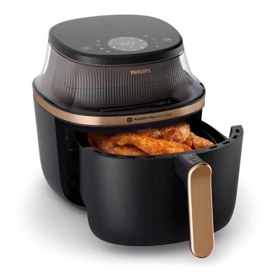 Запатентована технологія RapidAir Plus з унікальним зіркоподібним дизайном циркулює гаряче повітря навколо та крізь їжу з швидшим потоком повітря, забезпечуючи рівномірне приготування всередині та зовні для смачних домашніх страв за 30% менше часу.