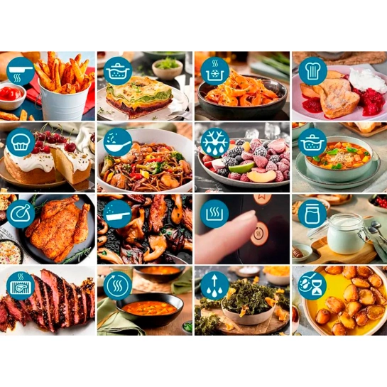 Вибирайте з 16 функцій приготування: від випічки та грилю до розморожування та розігріву. Налаштування від 40°C до 24 годин для зневоднення та ферментації.