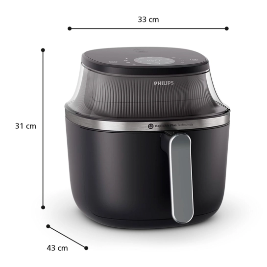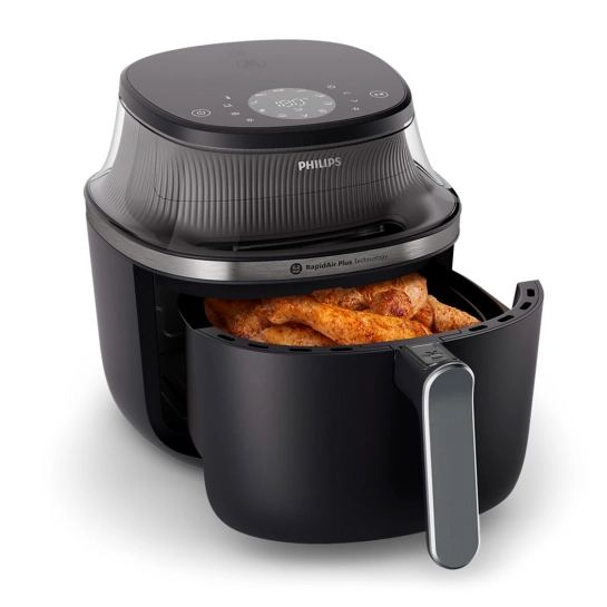 Готуйте смачні страви, зменшуючи вміст жиру до 90%. Запатентована технологія RapidAir Plus з унікальним дизайном у формі зірки забезпечує всеспрямовану циркуляцію гарячого повітря з підвищеною швидкістю потоку, завдяки чому страви готуються рівномірно як усередині, так і зовні. Ідеальний інструмент для створення смачних страв.