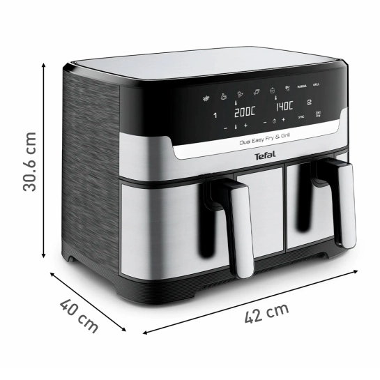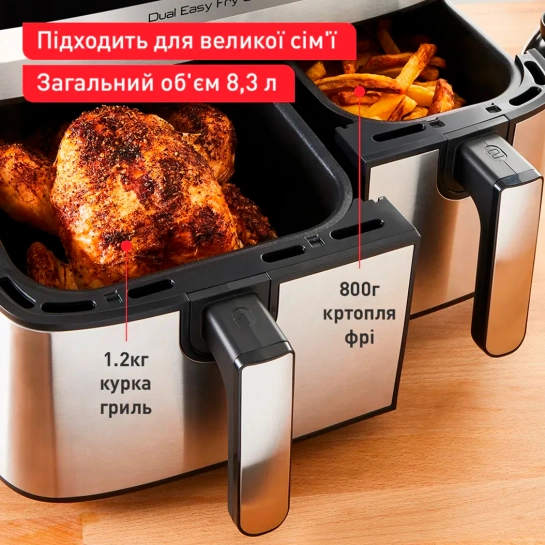 Характеристики для Мультипіч-аерогриль із двома відсіками Tefal Dual Easy Fry & Grill Air Fryer (EY905D10) (Global)