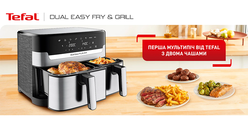 Мультипіч-аерогриль із двома відсіками Tefal Dual Easy Fry & Grill Air Fryer (EY905D10) (Global)