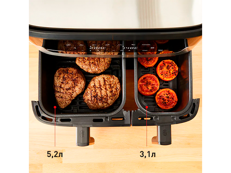 У чаші об'ємом 5,2 л зручно запікати цілу курку чи велику порцію гарніру. Чаша об'ємом 3,1л підходить для приготування однієї порції. Великий об'єм XXL дозволяє одночасно готувати щедрі порції улюблених страв. Від картоплі фрі та овочів, до курячих нагетсів.