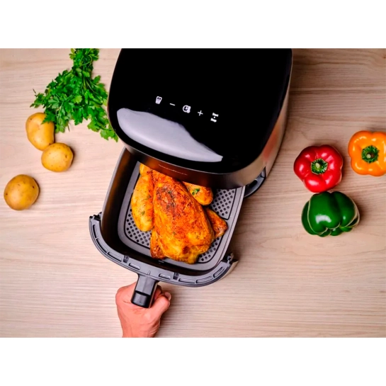10 автоматичних програм приготування: картопля фрі, курка, стейк, риба, десерт, піца, нагетси, овочі, креветки та бекон.