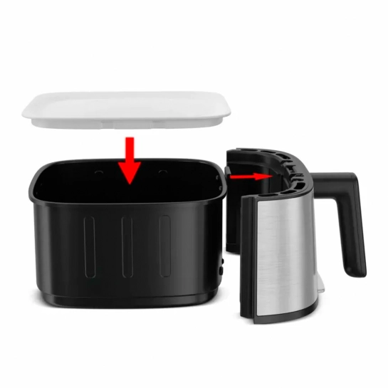 Безліч можливостей під рукою: сенсорне керування, регулювання температури (від 40°C до 220°C) та 10 автоматичних програм: картопля фрі, нагетси, бекон, креветки, запечена курка, піца, стейки, овочі, риба та випічка.