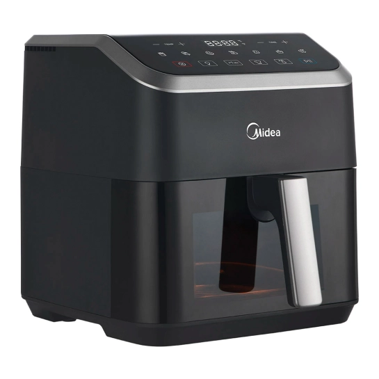 Мультипіч Midea ємністю 5 л, технологія HeatXpress На 90% менше олії, економія енергії та часу з 7 попередніми налаштуваннями, вікно з легким оглядом та освітленням, антипригарне покриття, кошик з можливістю миття в посудомийній машині. Midea, використовуючи ексклюзивну технологію HeatXpress, готує на 57% швидше, ніж у звичайній духовці, заощаджуючи до 70% на рахунках за електроенергію.