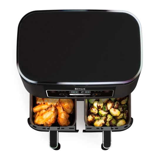 Забудьте про компроміси на кухні - мультипіч Ninja Air Fryer Dual Zone AF200EU дозволяє готувати відразу дві різні страви в незалежних кошиках, і все це - на 75% швидше, ніж звичайна духовка. Об'єм 7,6 л ідеально підходить навіть для великої родини: крильця в одному кошику, картопля по-мексиканськи в іншій – і все готове одночасно завдяки режиму SYNC. А якщо хочеться подвійної порції улюбленої страви, активуйте MATCH і мультипіч паралельно приготує їх в обох кошиках. 4 базові режими, аерофритюр, Max Crisp, обсмажування, розігрівання, та антипригарні тарілки Crisper Plates для ідеальної скоринки зроблять кожен прийом їжі особливим. Менше часу на кухні – більше насолоди від результату!