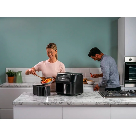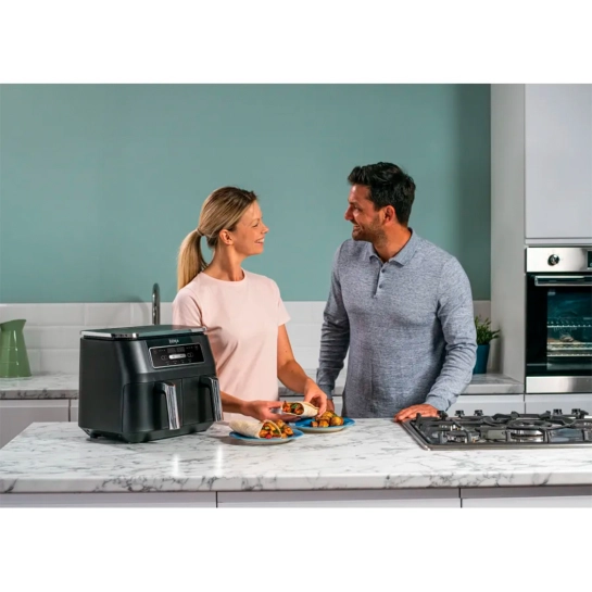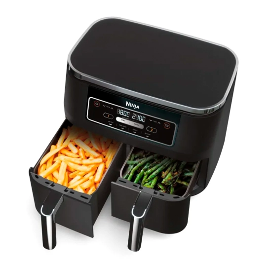 Головна перевага мультипечі Ninja Air Fryer Dual Zone AF200EU – можливість раціонально розподіляти час та ресурси. Пристрій споживає на 75% менше електроенергії, ніж стандартна духовка, і скорочує час приготування вдвічі. Улюблені страви, від соковитої курки до золотистої картоплі фрі, будуть готові швидше, поки ви займаєтеся приємнішими справами. Завдяки антипригарним тарілкам Crisper Plates ви отримуєте ідеальну хрустку скоринку без пригорання та складного очищення. Час насолоджуватися смачними та корисними стравами! Вибирайте Ninja Air Fryer Dual Zone та змінюйте харчові звички назавжди.