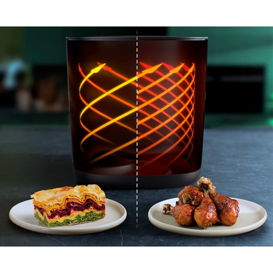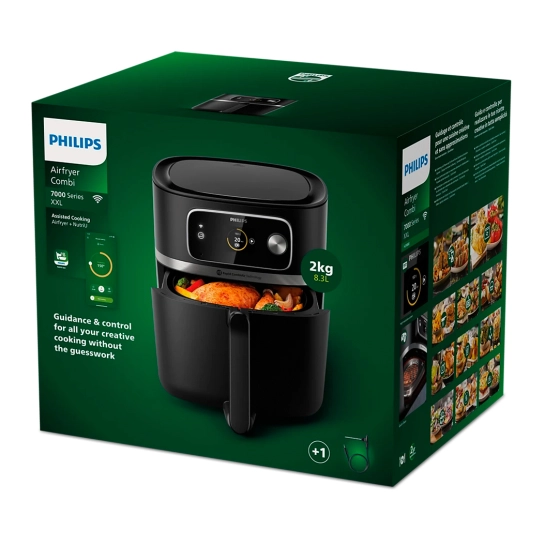 Більше їжі за менший час: готуйте великі порції та страви на 7+ чоловік без зайвих зусиль завдяки ємності XXL 2 кг/8,3 л – це наш найбільший аерогриль в історії.