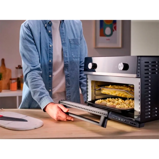 Універсальне приготування без контролю завдяки встановленим функціям приготування: Аерофритюр, Жарка, Гриль, Випічка, Піца, Тости, Дегідратація, Бейгл, Нагрів та Розігрів.