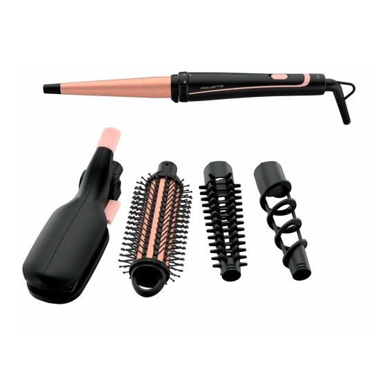 Мультистайлер працює як випрямляч 2 в 1 із системою Smart Switch та гофре щипцями, круглою щіткою з нагріванням (діаметром 32 мм) та конічними щипцями для завивки, а також оснащений комплектом додаткових аксесуарів - насадкою для створення спіральних локонів, щіткою для сумки для зберігання .