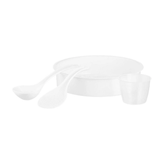 У комплект входять все необхідне для комфортного приготування: мірна склянка, ложка, ополоник і книга рецептів з різноманітними ідеями для ваших страв.