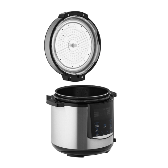 Модель оснащена литою алюмінієвою чашею зі стінками завтовшки 2 мм. Вся внутрішня поверхня ємності має протипригарне покриття. Її об'єм складає 6 літрів – це можливість готувати багато порцій смачних страв для великої родини чи кола друзів. Крім того, внутрішня чаша і паровий клапан легко знімаються, тому догляд за пристроєм буде напрочуд легким і зручним.