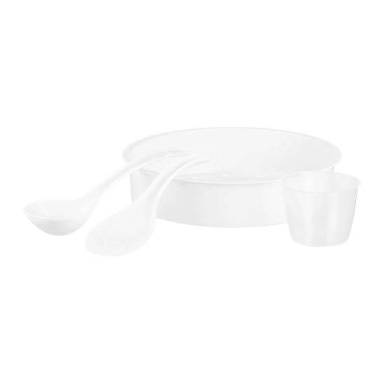 - У комплекті: мірна склянка, ложка, книга рецептів