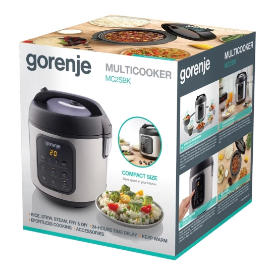 Мультиварка Gorenje оснащена різними варіантами приготування їжі, забезпечуючи універсальність вашої кухні.