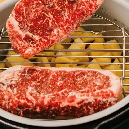 Якщо ви хочете швидко приготувати хрумку, почніть з функції під тиском, а потім - застосуйте ексклюзивну технологію TenderCrisp. Всі інгредієнти приготуються на 70% швидше, ніж за інших умов, а також ви отримаєте красиву золотисту скоринку. У комплекті постачається кришка для приготування під тиском та для скоринки. Крім цього, технологія TenderCrisp підходить для приготування заморожених інгредієнтів, ви навіть можете запекти цілу заморожену курку!