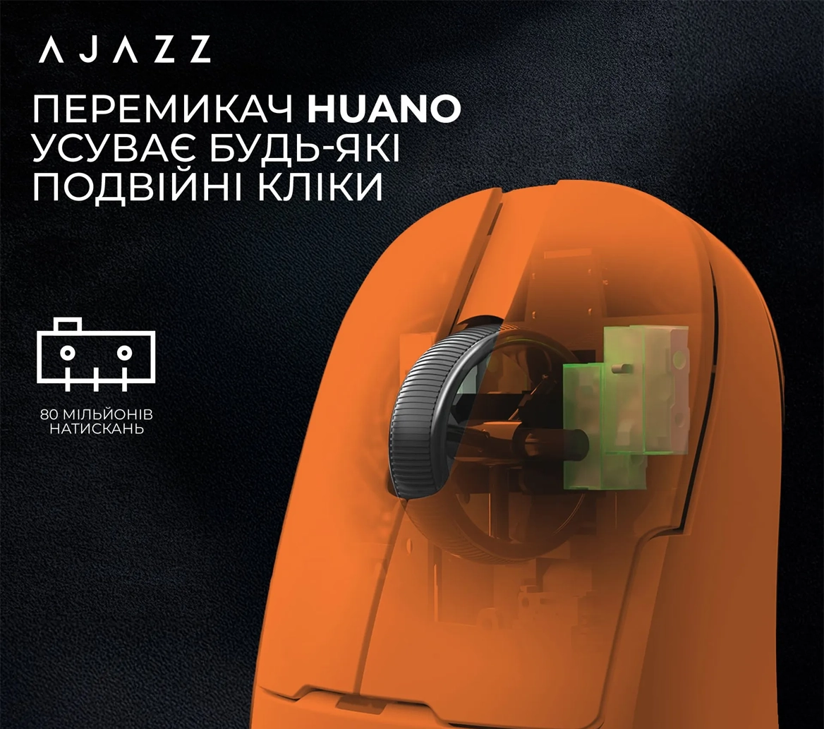 Під основними кнопками встановлені перемикачі Huano з ресурсом до 80 мільйонів натискань , що забезпечує чіткий тактильний відгук та довговічність пристрою. Вбудований акумулятор ємністю 400 мАч підтримує тривалу автономну роботу, а ультралегка вага всього 56 грам робить мишу максимально маневреною, знижуючи навантаження на кисть під час затяжних сесій.