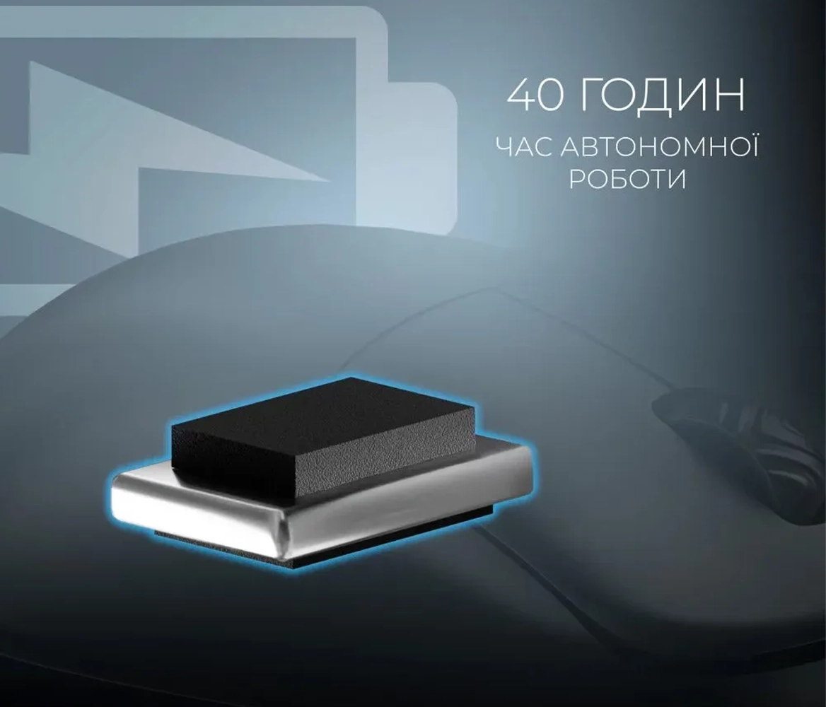 Миша здатна працювати до 40 годин на одному заряді, що робить її чудовим вибором для тривалих ігрових марафонів без необхідності частої підзарядки. Така автономність дозволяє повністю зосередити увагу на ігровому процесі, не переймаючись станом акумулятора.