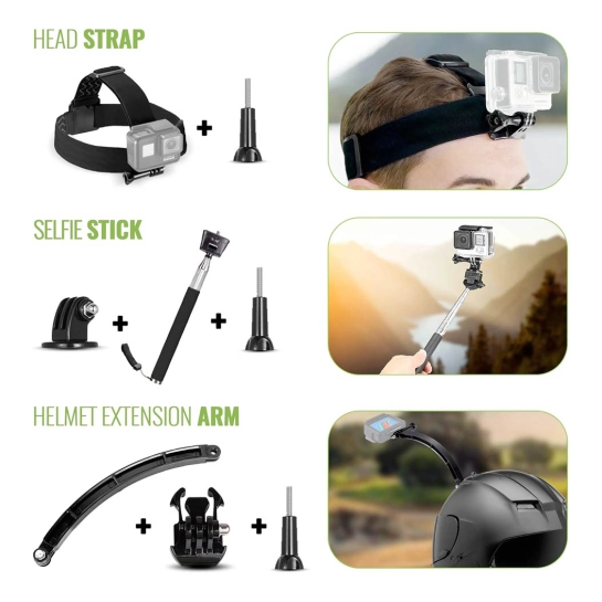 Цей комплект створений для сумісності з більшістю популярних екшн-камер, включаючи GoPro всіх серій, DJI Osmo Action, Insta360, AKASO, APEMAN, Campark, SJCAM та інші моделі, які використовують стандартне кріплення GoPro. Це означає, що незалежно від того, якою камерою ви користуєтеся, весь арсенал з 50 аксесуарів готовий до монтажу та зйомки.