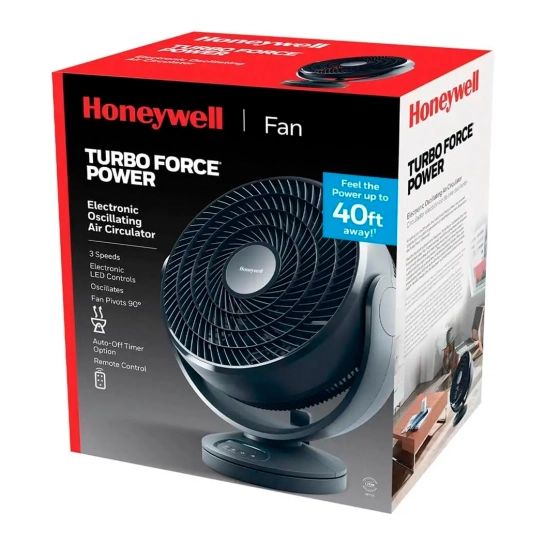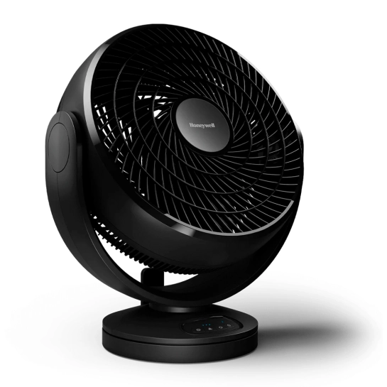 Вентилятор Honeywell із потужним двигуном обертається горизонтально на 75° для великого радіусу охолодження, а також передбачає вертикальне ручне обертання на 90° для потужної циркуляції у конкретному напрямку.