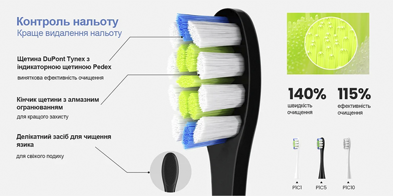 Щіточні насадки Professional Clean забезпечать виняткові відчуття від збирання та на 30 відсотків ефективніше видаляють наліт завдяки кінчикам щітки з алмазним покриттям DuPont.