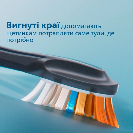 Вигнуті краї допомагають щетинкам потрапляти саме туди, де потрібно. Завдяки інтенсивному розвитку ми досягли універсального використання, що забезпечує винятковий догляд за ротовою порожниною.