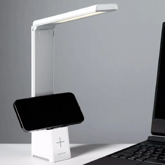 Вбудований акумулятор на 1200 мА·год забезпечує портативну роботу, тому лампу можна використовувати без постійного підключення до мережі. Регульований шарнір дозволяє змінювати кут нахилу, спрямовуючи світло саме туди, де він потрібен. Додаткова перевага — зручна підставка для телефону, яка робить робочий простір ще більш організованим.