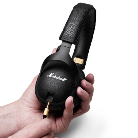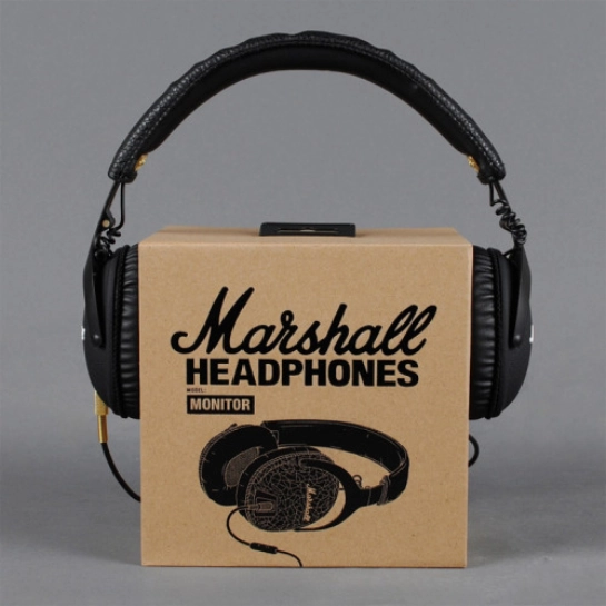 Характерна риса Monitor - білий логотип Marshall, нанесений на ніжну шкіру з золотистими вставками, які підкреслюють незрівнянний вінтажний дизайн Marshall. Пристрій навушників включає знімний кабель, а мікрофон і пульт управління на комплектному шнурі забезпечують сумісність з мобільними девайсами. Monitor мають складану конструкцію з міцними металевими петлями, в комплекті також йде компактний мішечок для зберігання.