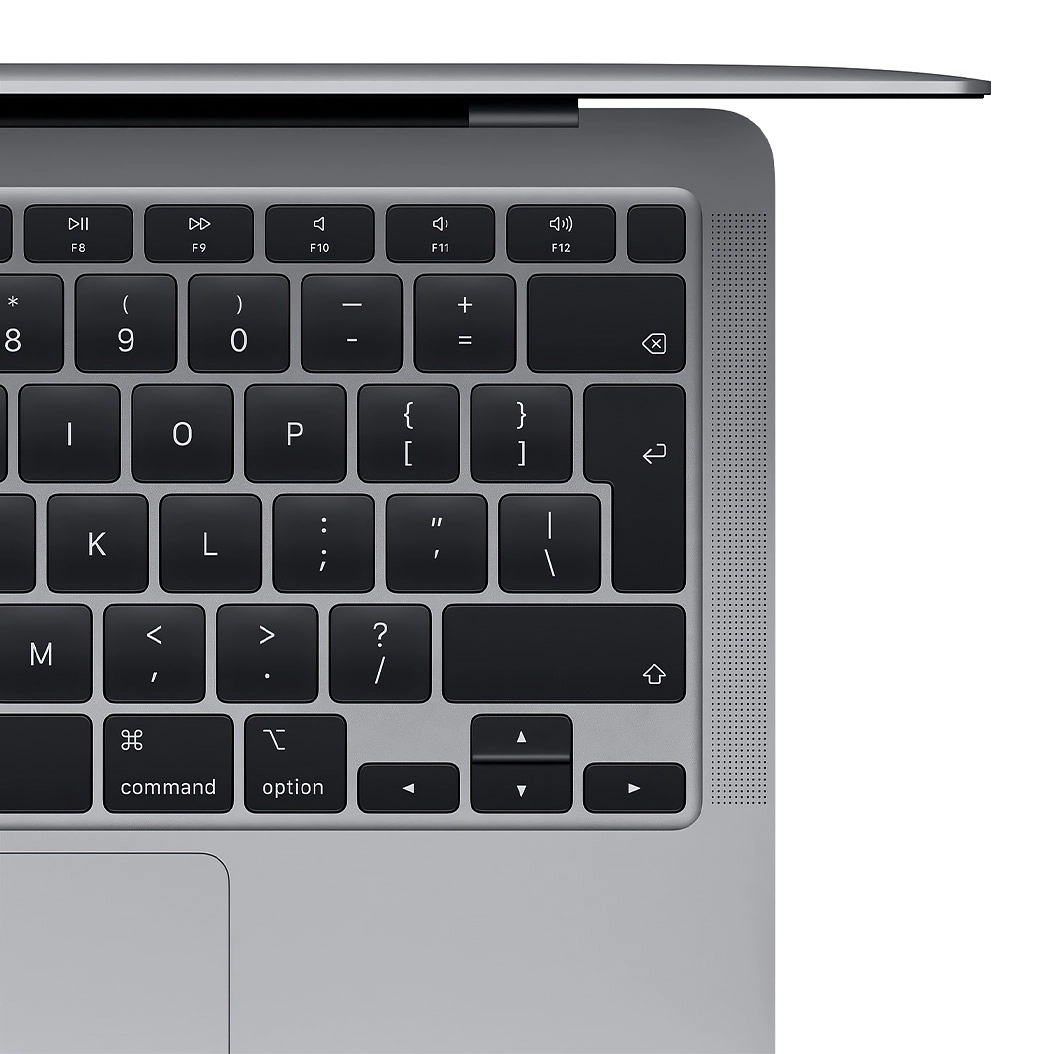 На цій клавіатурі не тільки легко і приємно друкувати. Всі її можливості - справжнє диво. Наперед задані поєднання клавіш забезпечують швидкий доступ до корисних функцій. Звертайтеся до Siri, перемикайте мову клавіатури, вибирайте відповідні емодзі, знаходьте документи за допомогою Spotlight - все в один дотик. А підсвічування клавіш і датчик зовнішньої освітленості допоможуть друкувати, коли стане темно. Клавіатура MacBook Air оснащена поліпшеним механізмом «ножиці» - це найзручніша клавіатура на ноутбуках Mac.