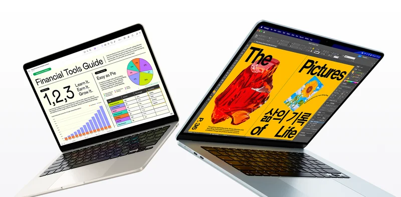 13-дюймовий MacBook Air — ідеальний ноутбук для подорожей, а 15-дюймова модель надає ще більше місця на екрані для багатозадачності.