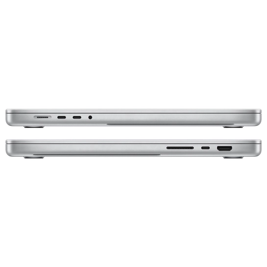 Слот для карт SDXC дозволяє переносити фото та відео. Порт HDMI - підключати телевізори та монітори. Вихід 3,5 мм автоматично розпізнає навушники з високим опором і коригує параметри. Три порти Thunderbolt 4 служать для підключення високошвидкісних периферійних пристроїв. А до гнізда живлення MagSafe 3 легко прімагнітілась кабель для швидкої зарядки.