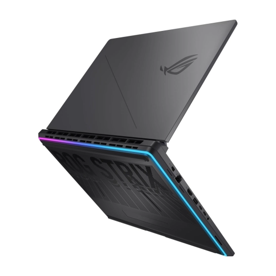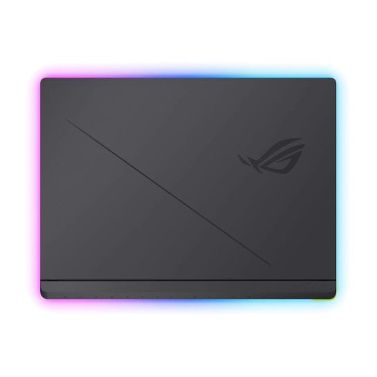 Ноутбук 2025 ROG Strix G18 оснащений RGB-підсвічуванням, що обрамляє усю нижню панель корпусу, створюючи яскраве світіння на столі. Це підсвічування може синхронізуватися з іншими периферійними пристроями ROG.