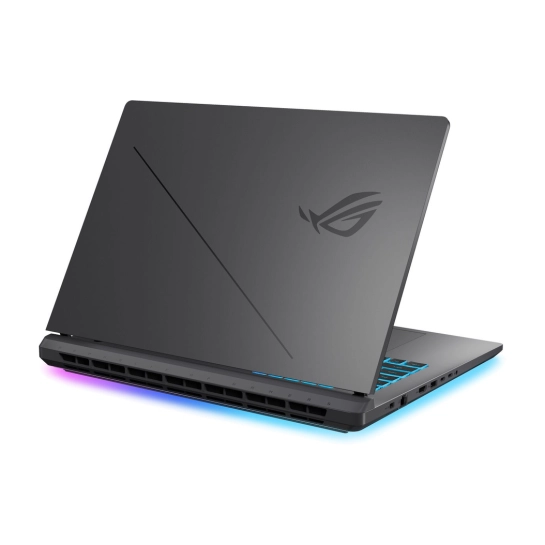 Ноутбук 2025 ROG Strix G18 оснащений RGB-підсвічуванням, що обрамляє усю нижню панель корпусу, створюючи яскраве світіння на столі. Це підсвічування може синхронізуватися з іншими периферійними пристроями ROG.