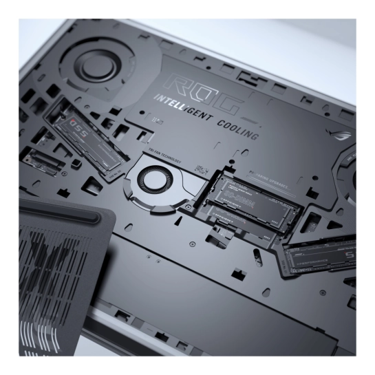Для того, щоб зробити апгрейд нового Strix SCAR 18 простіше, ніж будь-коли, його дизайн був повністю перероблений. Нова конструкція корпусу не потребує інструментів для доступу до оперативної пам'яті, твердотільних накопичувачів та вентиляторів, а для слотів SSD використовується найновіша система фіксації Q-Latch. Подібно до механіки досвідченої бригади, що працює на піт-лейн, ти можеш за лічені секунди витягти і замінити SSD і модулі оперативної пам'яті, і машина знову запрацює, не пропустивши жодного кола. Спеціальна рамка закриває решту материнської плати для захисту інших компонентів, але її можна легко зняти, вийнявши кілька гвинтів, якщо потрібно виконати подальші роботи.