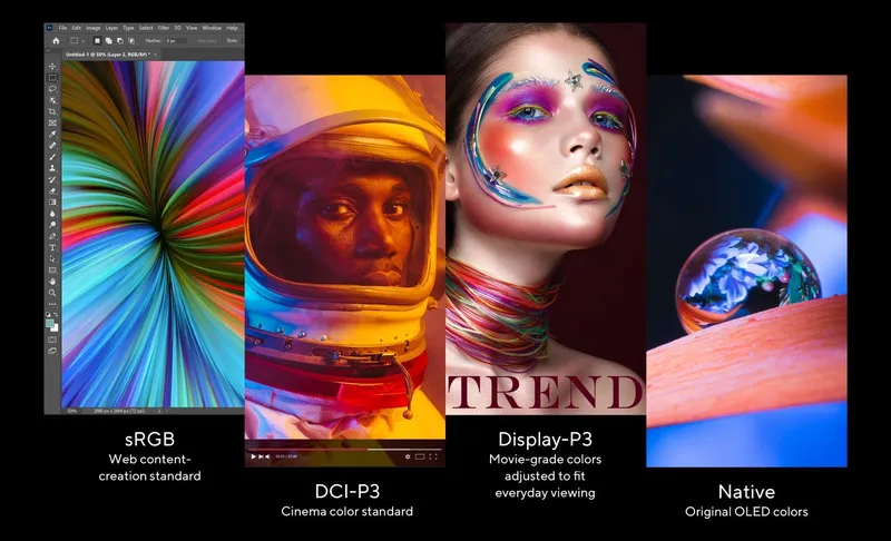 - 100% колірного простору DCI-P3: насичені кольори для обробки та перегляду мультимедійного контенту.