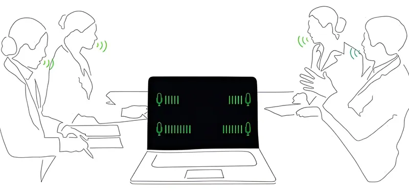 Режим відеодзвінка з багатьма доповідачами відфільтровує фоновий шум і водночас ідентифікує багато голосів с усіх боків та відстаней, щоб кожен голос було чітко чутно.