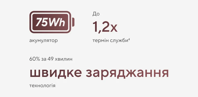 | Ємність акумулятору: | 75 Вт/год |