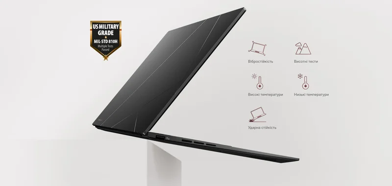 Ноутбук пройшов випробування на відповідність військово-промисловому стандарту MIL-STD-810H. Це гарантує надійну роботу в різних умовах експлуатації, продовжуючи термін служби вашого пристрою.