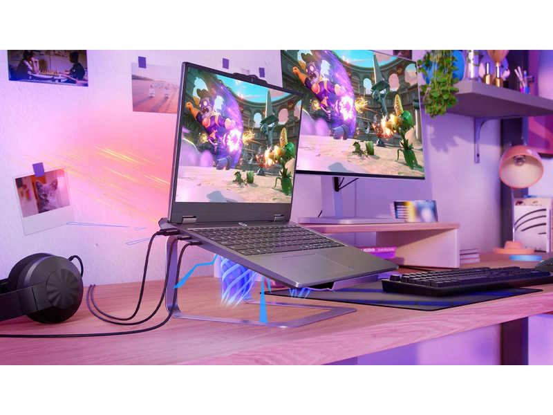 Спеціальна технологія охолодження Lenovo LOQ Essential забезпечує охолодження системи завдяки великому вентилятору, який забезпечує покращений повітряний потік. За допомогою комбінації клавіш Fn+Q можна перемикатися між режимами для ігор або навчання.