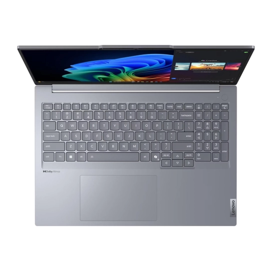 Lenovo опікується зручністю кожного користувача: клавіатура ноутбука, виготовлена з перероблених матеріалів, оснащена спеціальними тактильними мітками. Це значно спрощує навігацію та підвищує точність набору тексту для людей із порушеннями зору, дозволяючи працювати впевнено без необхідності постійного візуального контролю. Доповнює преміальний досвід аудіосистема Dolby Atmos з висококласними лінійними динаміками та технологією Smart Amp, яка гарантує кришталево чистий, об'ємний та персоналізований звук у будь-якій обстановці.