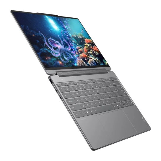 Витончений ноутбук "2-в-1" Yoga 9i Gen 9 – це по-справжньому універсальний пристрій, який стане твоїм надійним і зручним компаньйоном, де б ти не знаходився – в дорозі, в кафе або на діловій зустрічі. Переведи його в режим підставки та насолоджуйся захоплюючим контентом, ефективно працюй в дорозі в режимі планшета або сконцентруйся на найскладніших завданнях, увімкнувши режим ноутбука. І ніяких компромісів між гнучкістю і стилем: цей приголомшливий пристрій товщиною всього 15,9 мм укладено в цілісний корпус з заокругленими глянсовими краями, що забезпечують комфорт при використанні.