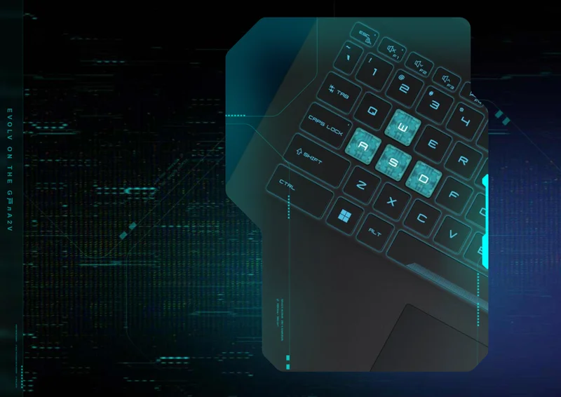 Найважливіші клавіші – комбінація WASD, стрілки, клавіша пробілу і кнопка живлення – виділені серед інших спеціальним оформленням, що дозволяє швидше знаходити їх на клавіатурі й надає всьому пристрою оригінальний зовнішній вигляд в стилі кіберпанку.