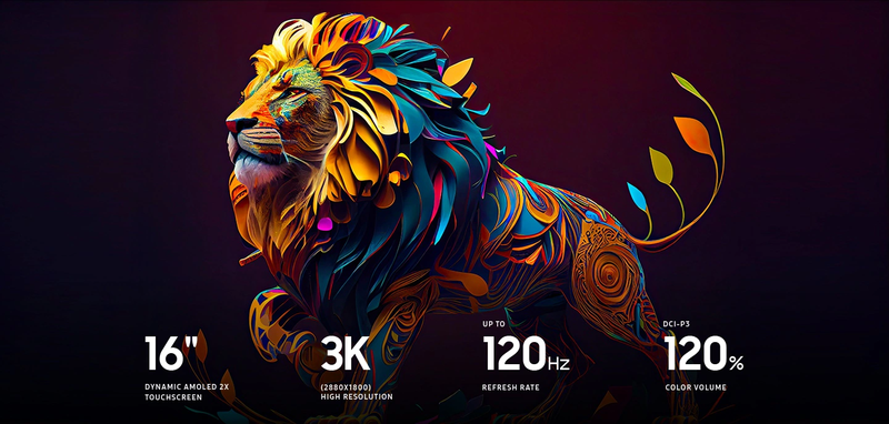 Величезний, наддетальний 16-дюймовий дисплей 3K Dynamic AMOLED 2X — це справжнє свято для очей. Втілюйте свої творчі задуми в життя з неймовірною передачею кольорів і яскравістю, надплавною частотою оновлення до 120 Гц і зниженим випромінюванням синього світла для комфорту очей.